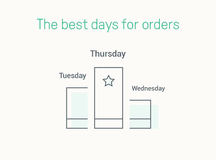 In short, the middle of the week works as the sweet spot because people are past the Monday drag, but the weekend isn’t consuming their thoughts. It’s a good in-between zone to catch people in a better mood to buy your products or to read your emails.