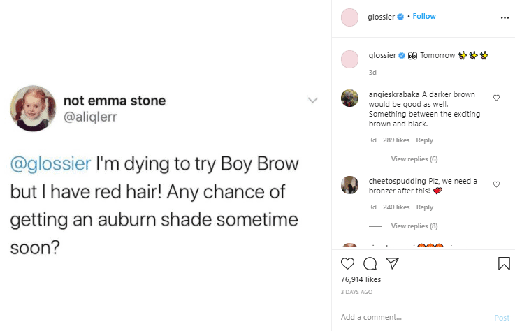 Here’s what Glossier did to show how much they listen to their customers’ needs and work hard on meeting them.