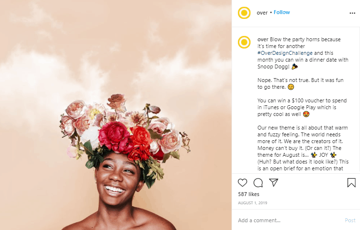They had hundreds of people post their Over designs, and the winners were featured on their Instagram account.
